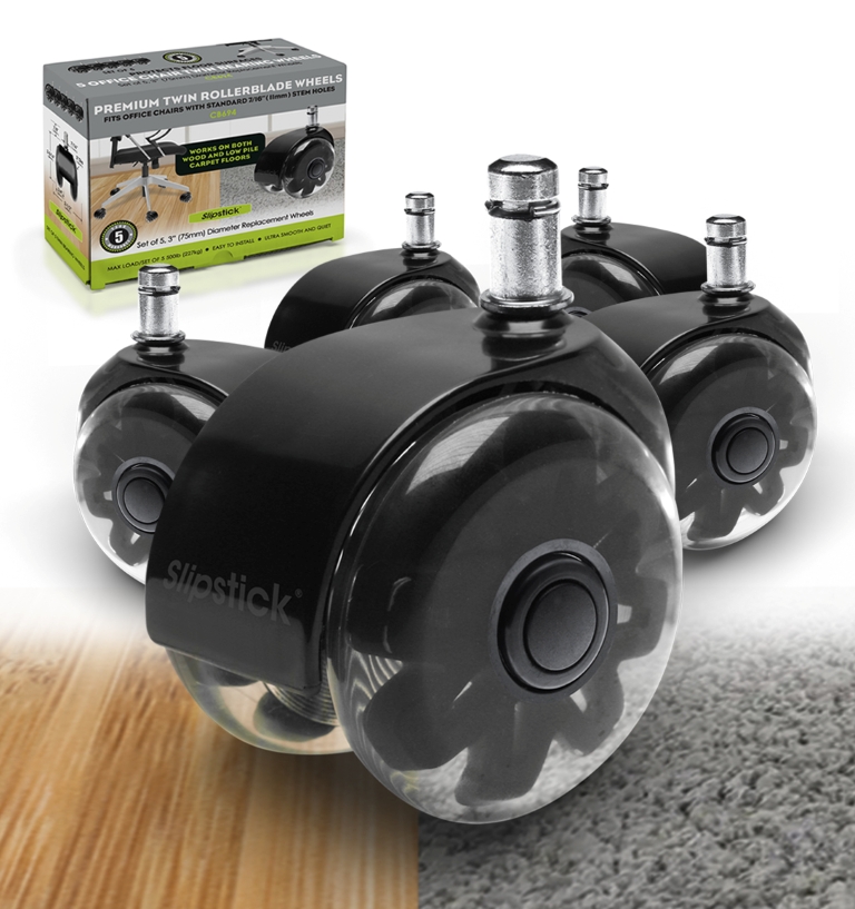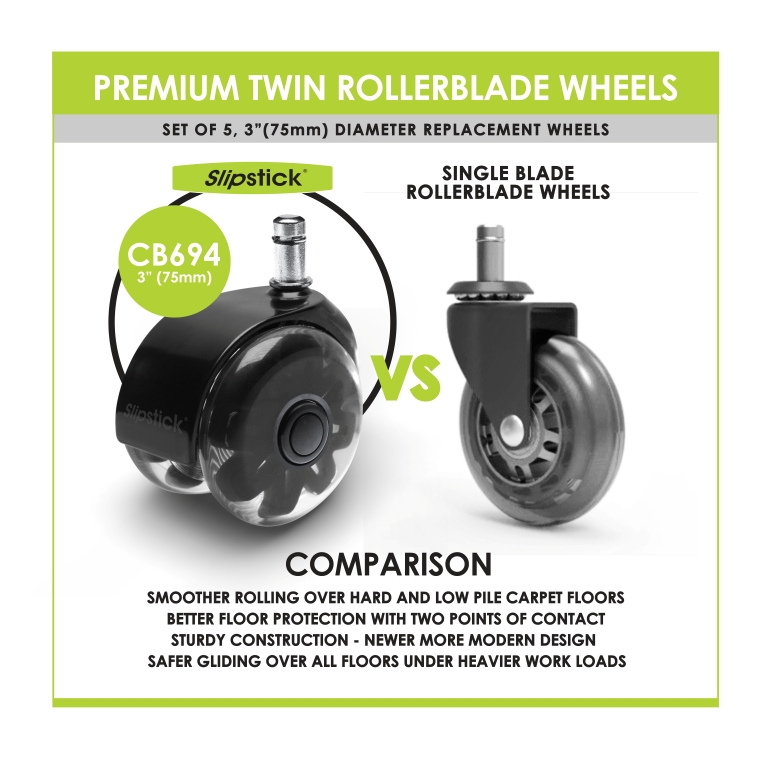 Slipstick Twin Rollerblade Castor Wheels are perfect for replacing existing office chair wheels and protects polished floor surfaces.