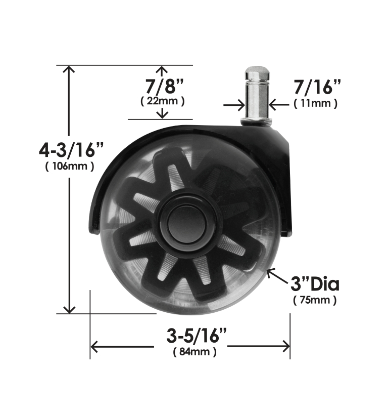 • MONSTER 75mm dual rollerblade wheels for office chairs – Upgrade your chair caster wheels and stand out at the office with these XL size premium office chair wheels. These rubber chair castors feature universal standard stem size: 7/16 ” x 7/8 “(11×22 mm) and are suitable for 99% office chairs brands of Miller Steelcase, Aeron, Herman, Dxracer, Humanscale Freedom, Lazyboy, Serta, Hon, Boss, and more. IMPORTANT: Not for 1KEA chairs.